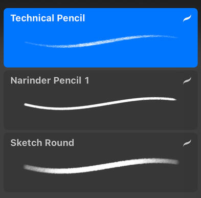 sketching: default procreate technical and narinder pencil, jingsketch basics sketch round
